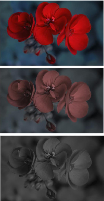 Однако в сумерках мы видим окружающий мир иначе, чем днем: мы не можем различать цвета, и восприятие некоторых цветов в сумерках искажается, например, красный кажется нам почти черным, потому что пиковая чувствительность палочек приходится на сине-зеленую область — это цвет сумеречного неба.