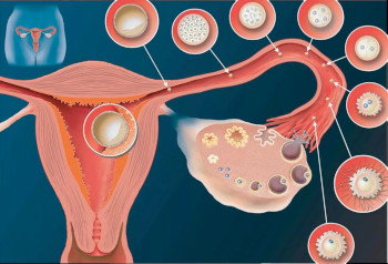 В течение нескольких недель в яичнике женщины, в фолликулах (пузырьках с жидкостью), созревает яйцеклетка. Далее фолликул лопается под действием лютеинизирующего гормона (ЛГ) и зрелая яйцеклетка выходит из яичника; она готова к оплодотворению. Далее яйцеклетка попадает в маточную трубу, где может быть оплодотворена сперматозоидом. Дополнительно в процессе вырабатывается гормон прогестерон, который готовит матку к беременности. Если оплодотворения не произошло, то яйцеклетка распадается, и через примерно две недели начинается менструация.
