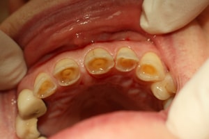 Зубная истираемость; зубы становятся маленькими и неприглядными